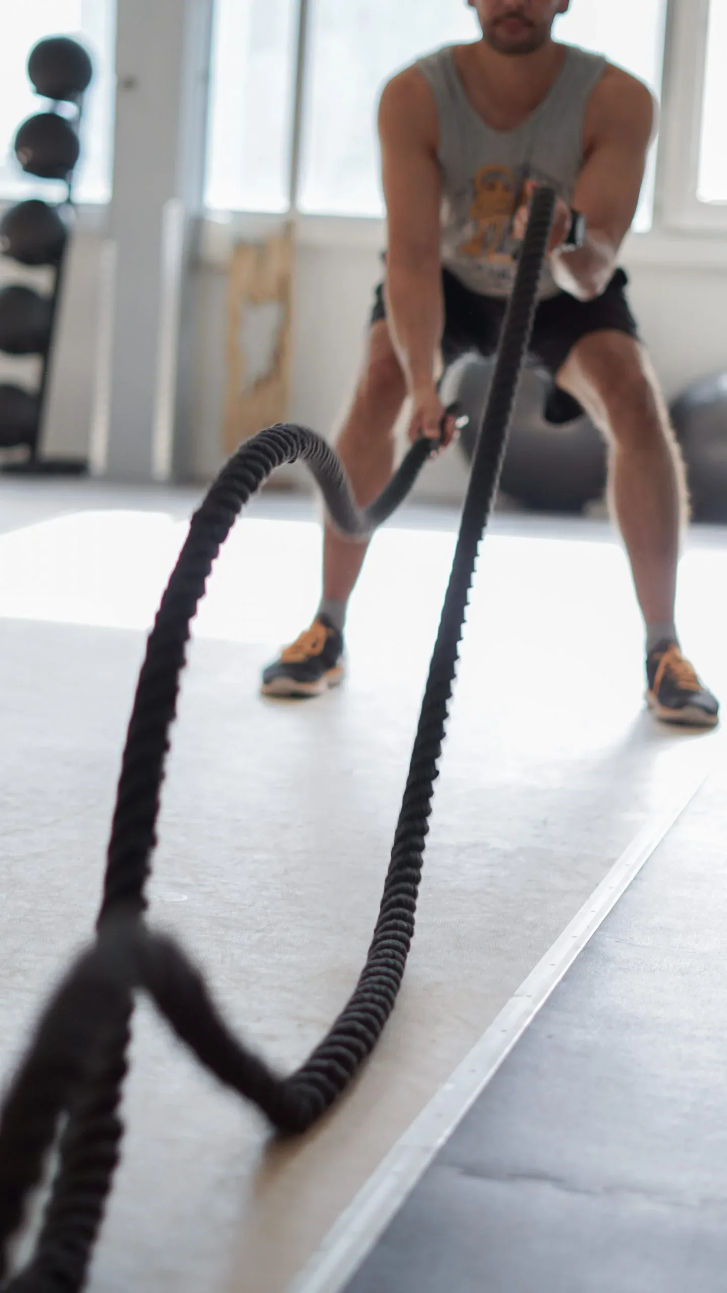 Bändern, Kettlebells und ähnlichem. Es werden hochintensive Intervalle im eigenem Tempo und